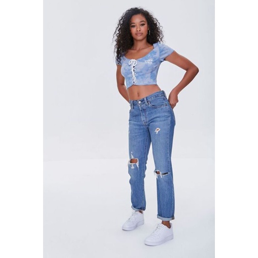Detail F21 TIE DYE KNIT BUTTON CROP TOP-ORIGINAL 100%