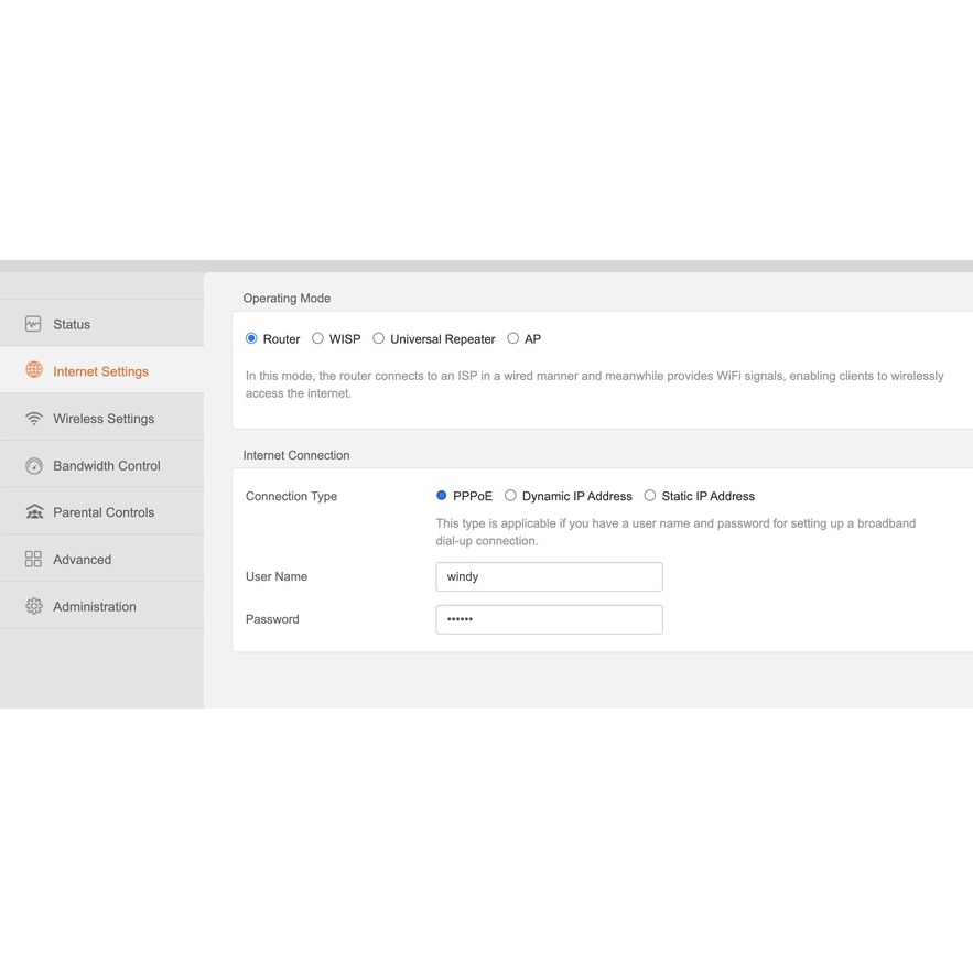 SUPPORT : 1. DHCP โ 2. PPPoE โ 4. AP Akses Poin โ 5. Static IP address โ 6. Client Bridge โ 7. WISP โ 8. Remote Web Management โ 9. Universal Repeater โ