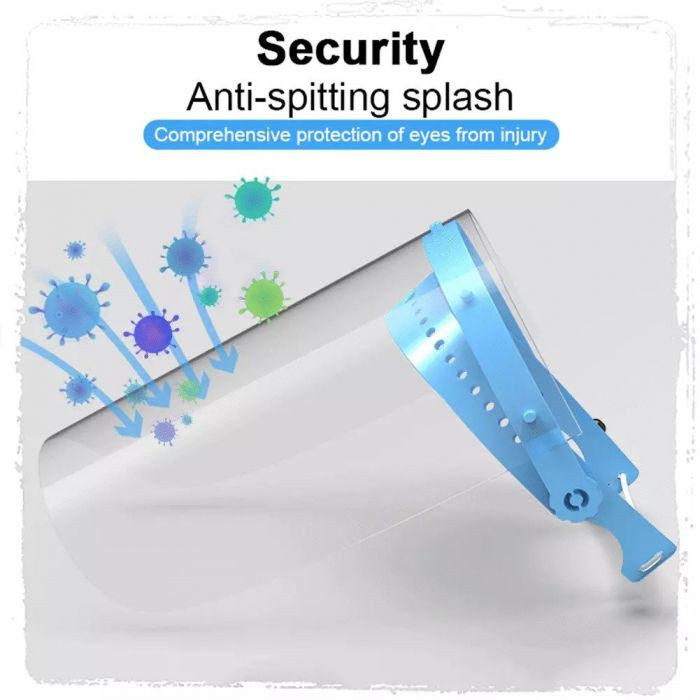 FACE SHIELD mudah di pasang Bahan berkualitas ANTIEMBUN dapat di cuci dan tahan lama Sangat aman di pakai untuk bepergian ke luar rumah Aaman dari virus dan Droplet