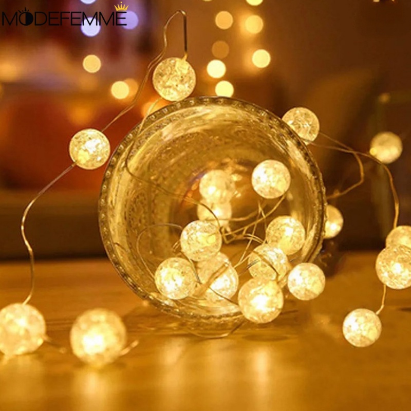 Detail Fairy Garlands Luminous Lampu LED Kawat Tembaga Fleksibel String Lampu Tenaga Baterai Pencahayaan Decor Props 3warna Bola Retak Light String Ulang Tahun Pacaran Dekorasi Pesta