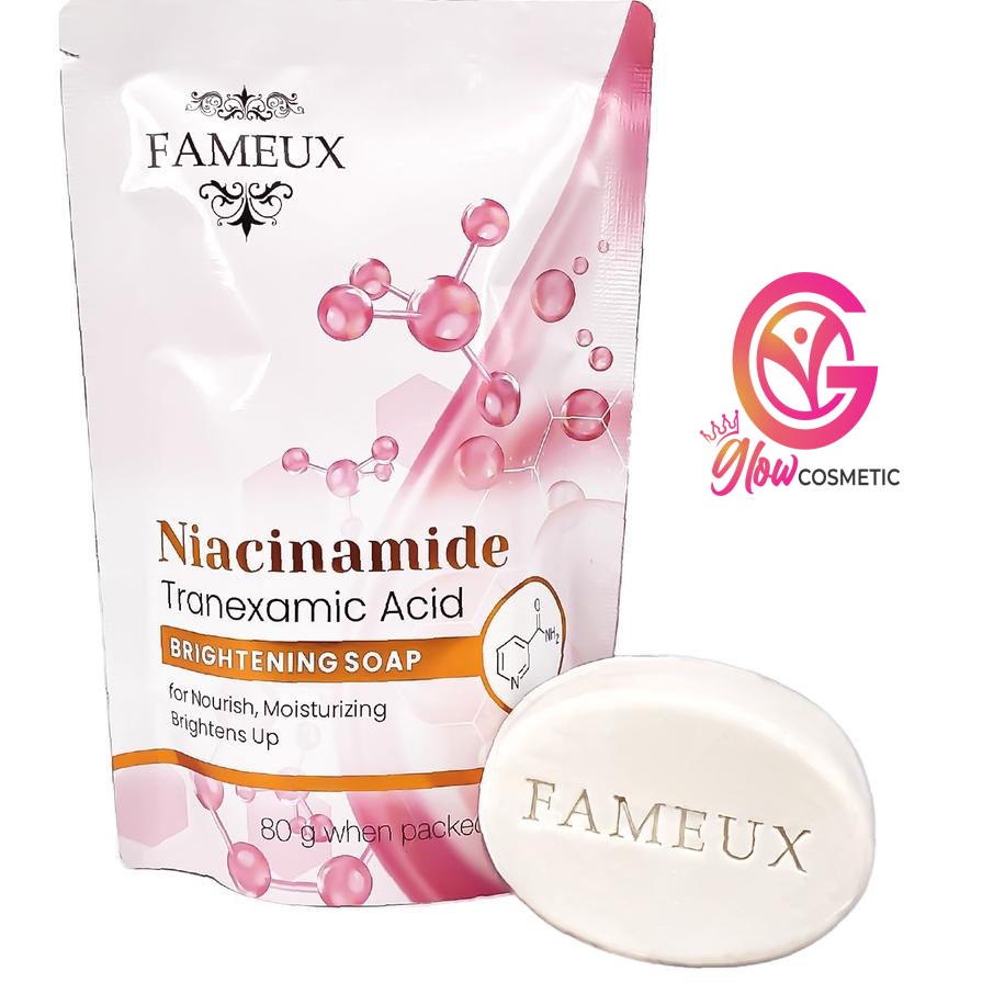 Fameux Brightening Soap sabuUN sehingga dapat bekerja lebh efektif untuk mencerahkan kulit Manfaat : 🌟 Menghambat produksi melanin dan Mencerahkan kulit 🌟Melembabkan kulit 🌟Meratakan warna kulit 🌟Menyamarkan noda hitam dan bekas luka 🌟Membuat kulit lebih kenyal, serta mengurangi resiko timbulnya kerutan dan flek 🌟Dilengkapi dengan aroma yang elegan