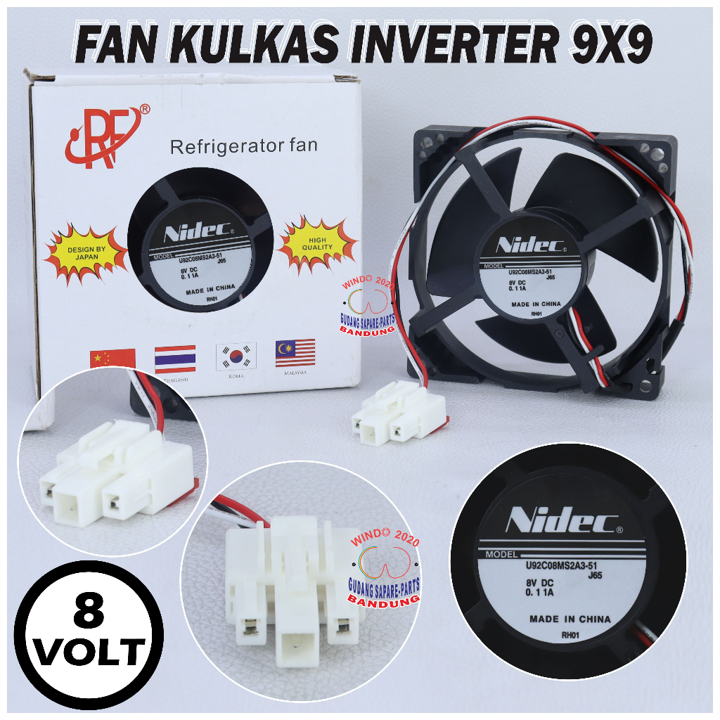 Detail FAN KOTAK SANYO INVENTER DC 8V 9X9 NIDEC | MOTOR FAN KULKAS DC 8V | DINAMO FAN KULKAS 8 VOLT