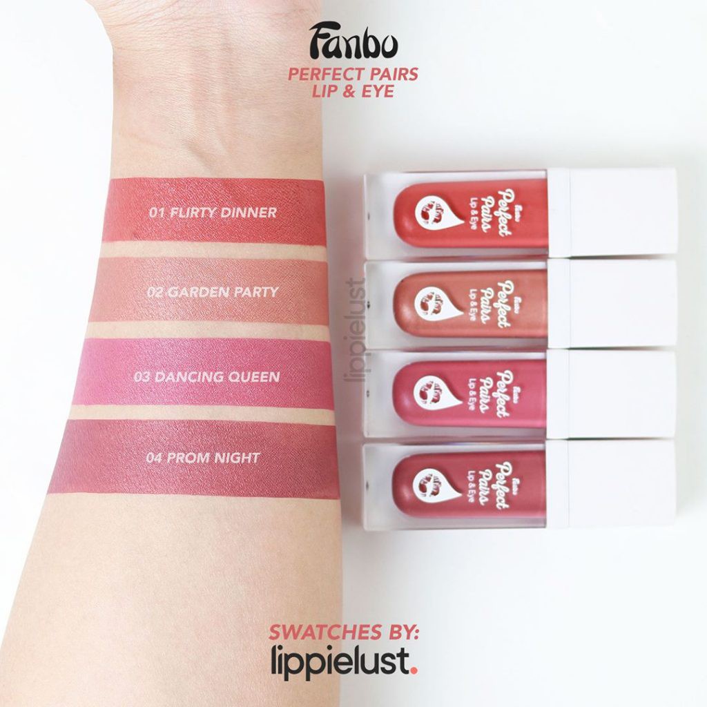 FANBO PERFECT PAIRS LIP & EYE Jadikan mata dan bibir mu lebih memukau dengan Fanbo perfect pairs Lip & Eye, lipstik yang sekaligus dapat digunakan sebagai eyeshadow dengan koleksi warna metalik nya mengajak kamu untuk tidak takut ber- ekspresi ! Tersedia 4 Varian Warna; 01, 02, 03, 04