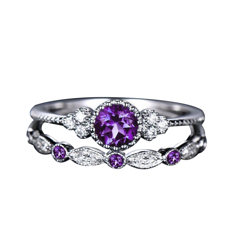 Detail Fancyqube 2pcs / Set Cincin Jari Wanita Hias Batu Kristal Biru Hijau Warna Silver Untuk Pernikahan