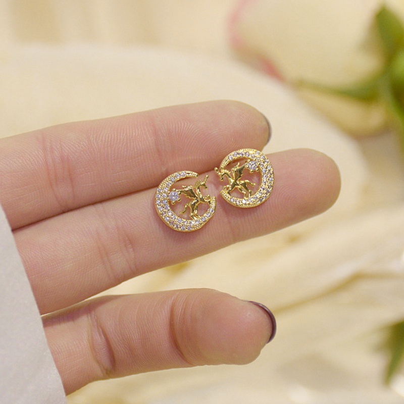 Detail Fancyqube Anting Stud Desain Hewan Kuda Kucing Burung Hantu Aksen Mutiara Berlian Imitasi Untuk Wanita