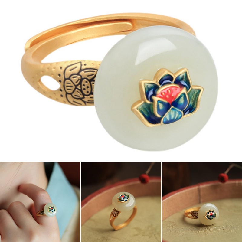 Detail Fancyqube Fancycube Cincin Model Terbuka Bentuk Bunga Teratai Bahan Giok Hetian Warna Emas