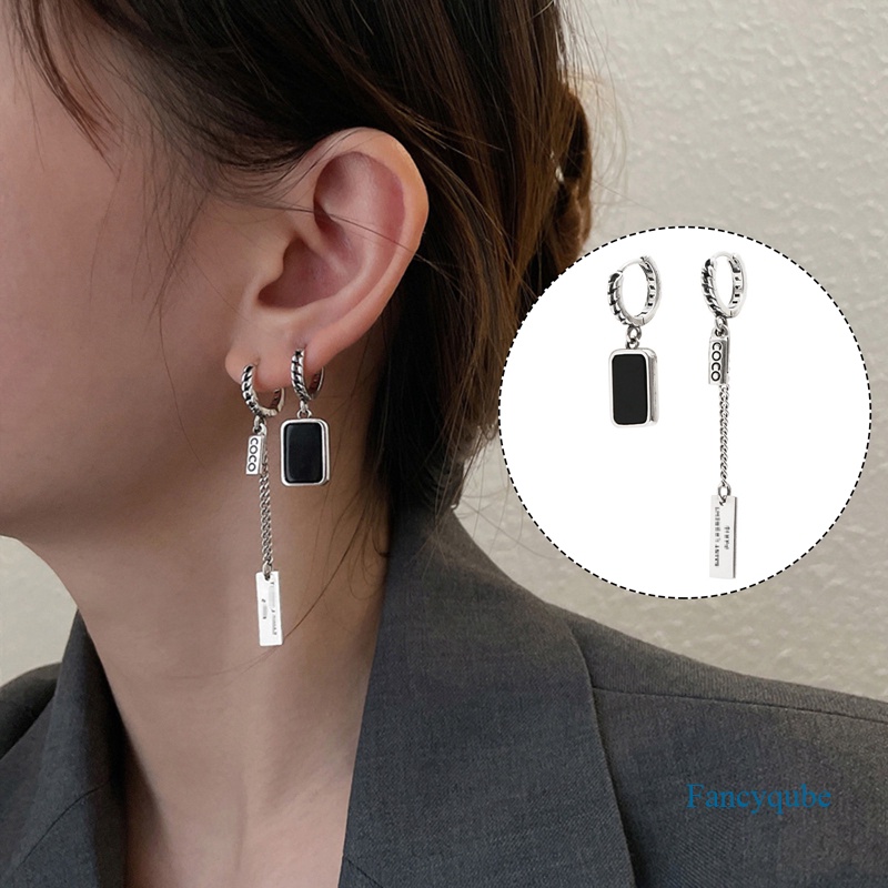 Detail Fancyqube S925 Sterling Silver Asimetris Rumbai Anting Wanita Retro Temperamen Anting Anting Anting Hip-Hop Anting Huruf
