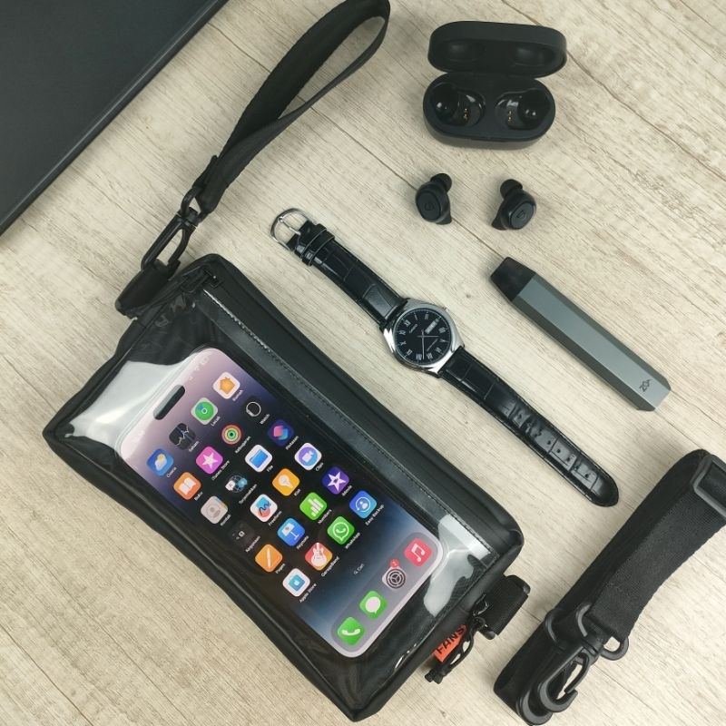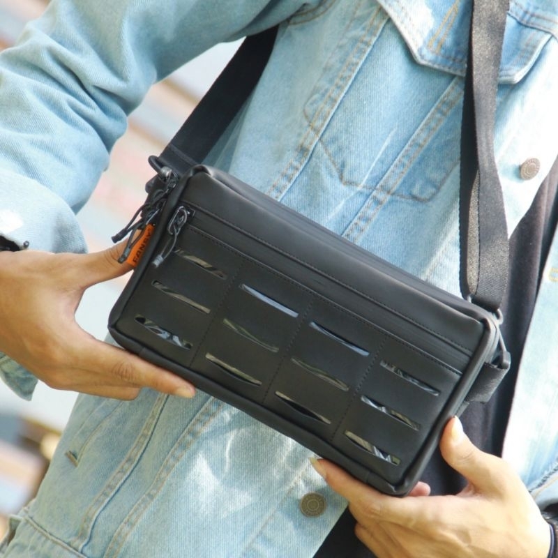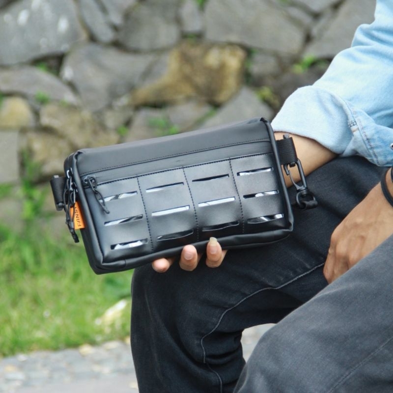 Detail FANSY CLUTCH POUCHBAG HUGO - TAS PRIA WANITA SLINGBAG MULTIFUNGSI HITAM