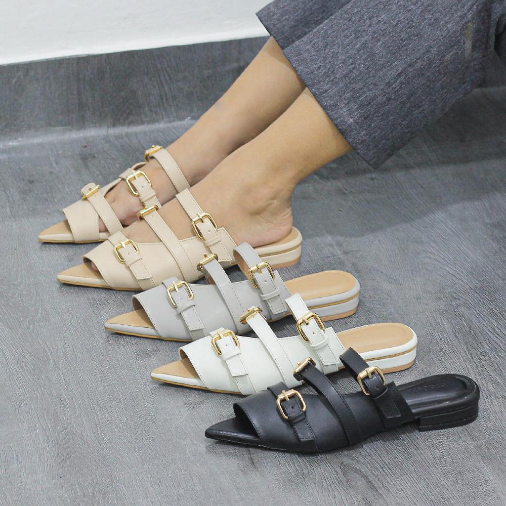 Matterial: - Upper : Kulit Sintetis Premium - Lining : Suede High Quality - Insole : Soft Cushion Foam - Outsole : Non Slip Soil - Heels : 2 cm ( medium ) - Variasi : Strap and Buckle Combination Colour : - Black - Cream - White - Gray Size : 36 - 41 B : * Harap menanyakan ketersediaan stok terlebih dahulu melalu chat admin kami.