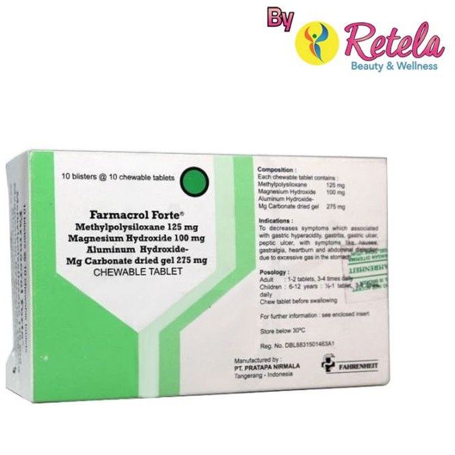 Tiap tablet mengandung Simethicone 125 mg, magnesium hydroxide 100 mg, aluminium hydroxide 275
