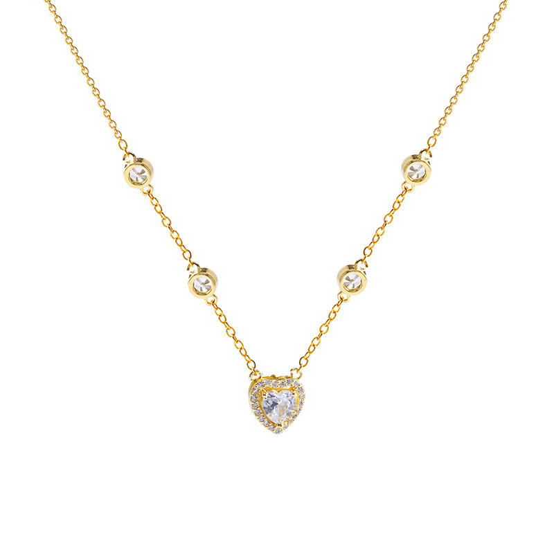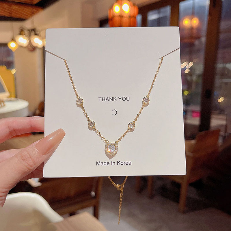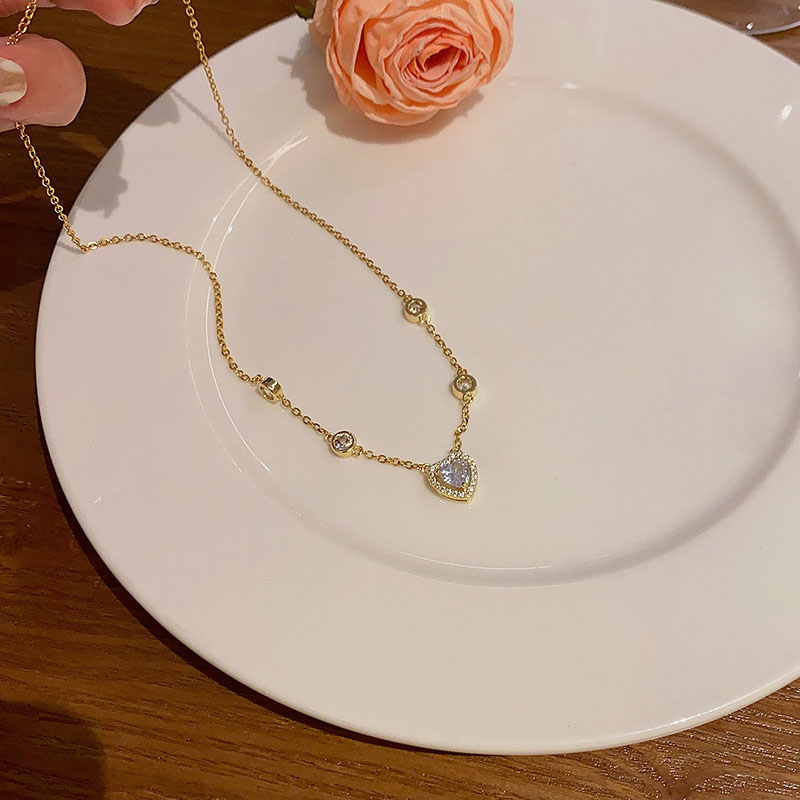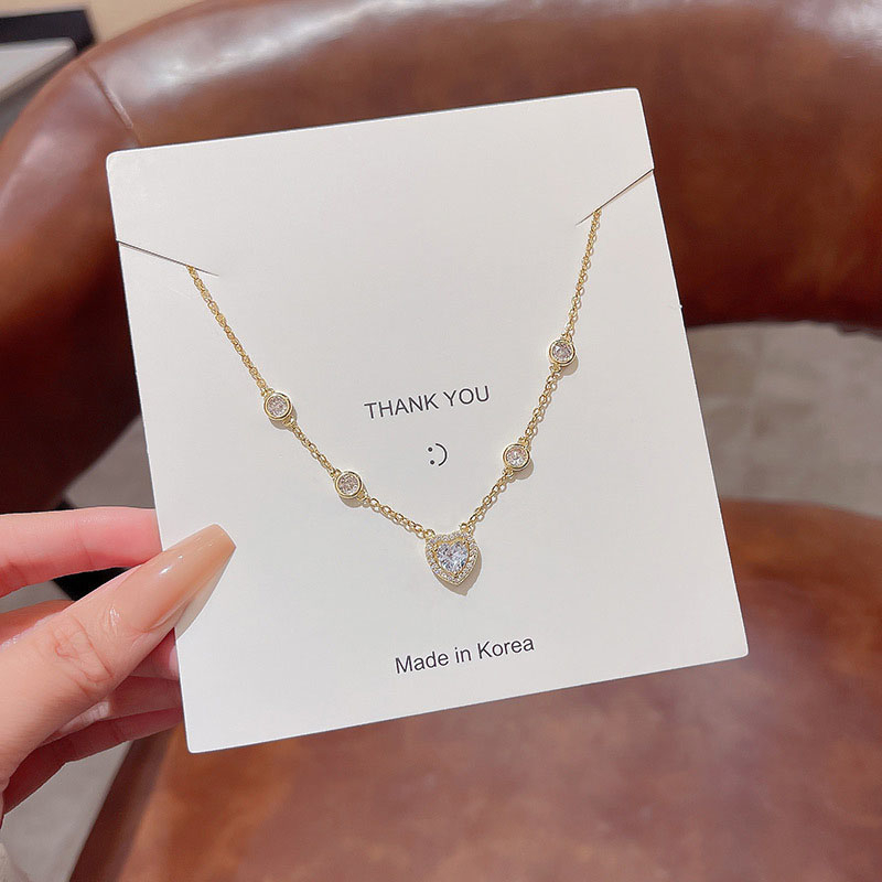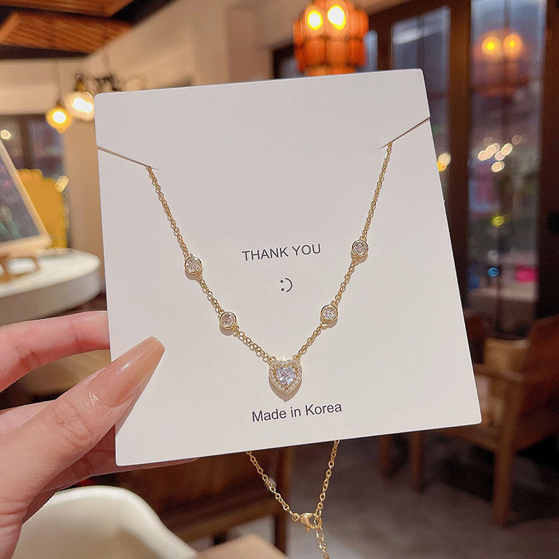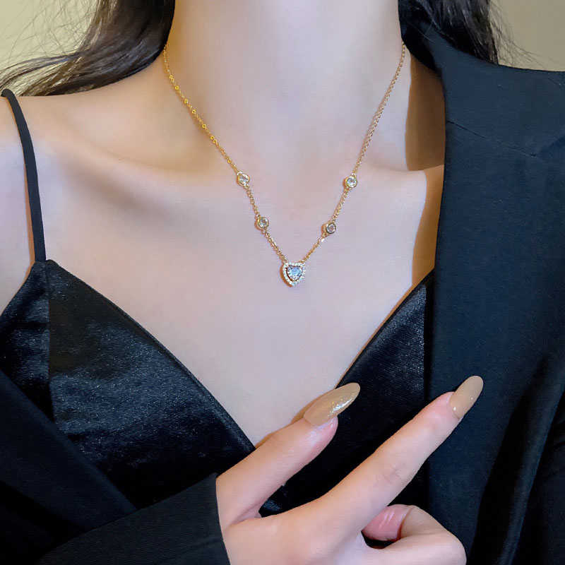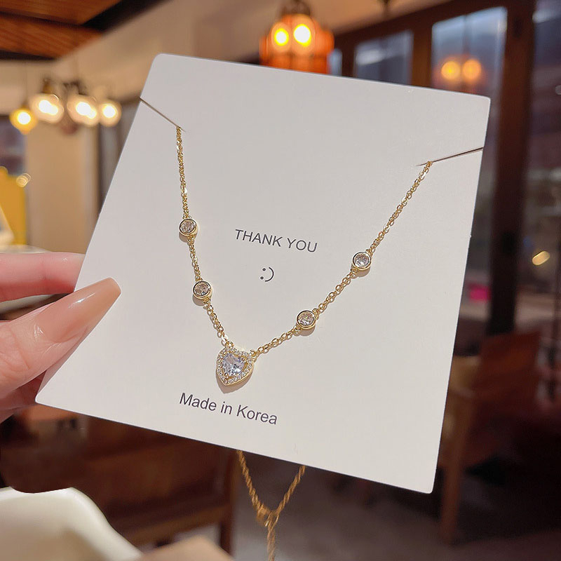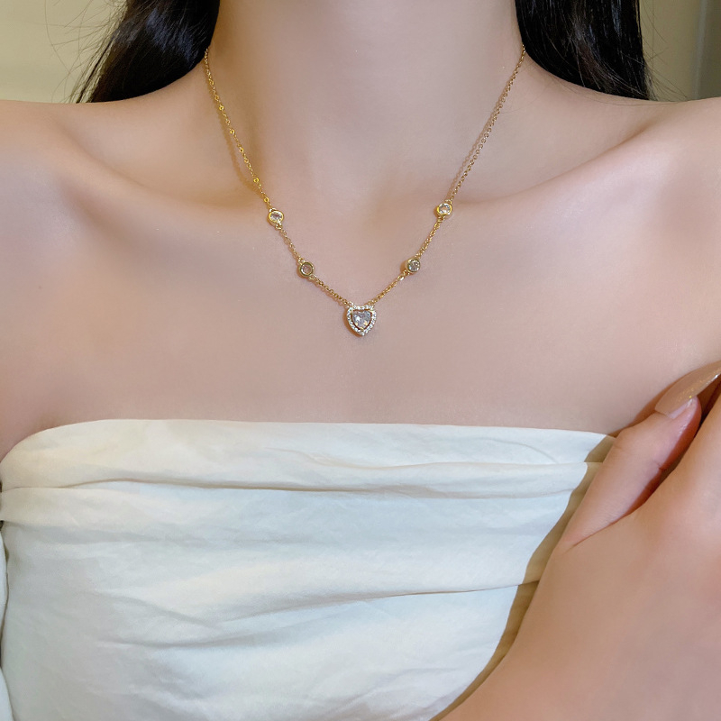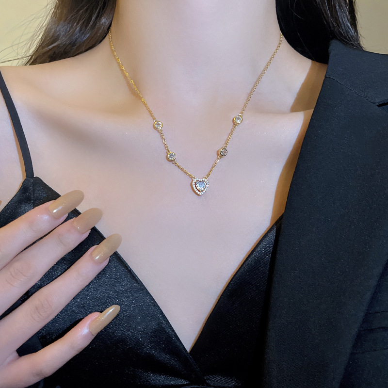 Detail Fashion Baru Indah Zirkon Jantung Liontin Titanium Kalung Mewah Wanita Choker Necklaces