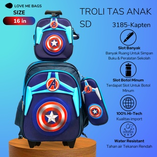 LMB Tas Troli Anak Sekolah Laki Laki SD Import 3in1 Bahan Nilon Premium Bagian Depan Timbul 6D Karakter Superhero Tebal Ukuran Besar