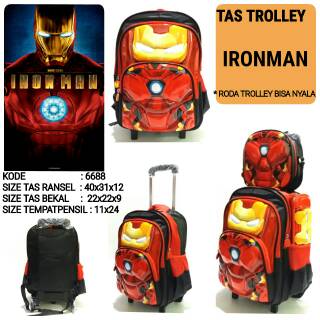 Tas sekolah anak laki trolley batman 2 SET 16013 terbaru roda trolley nyala
