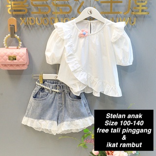 (LOLI-JKT) BS-272 SET ANAK CEWEK FREE BELT DAN HAIR TIE + CELANA JEANS SIZE 100-140