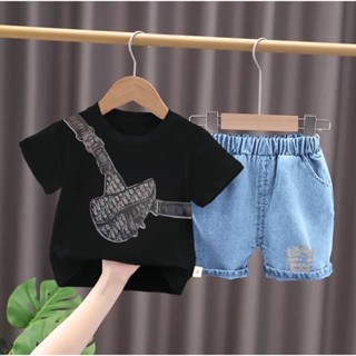 Trendy setelan baju kaos celana jeans denim bayi anak laki laki dan perempuan unisex motif tas wasbag dr best quality usia 6 bulan-5 tahun termurah terlaris terbaru