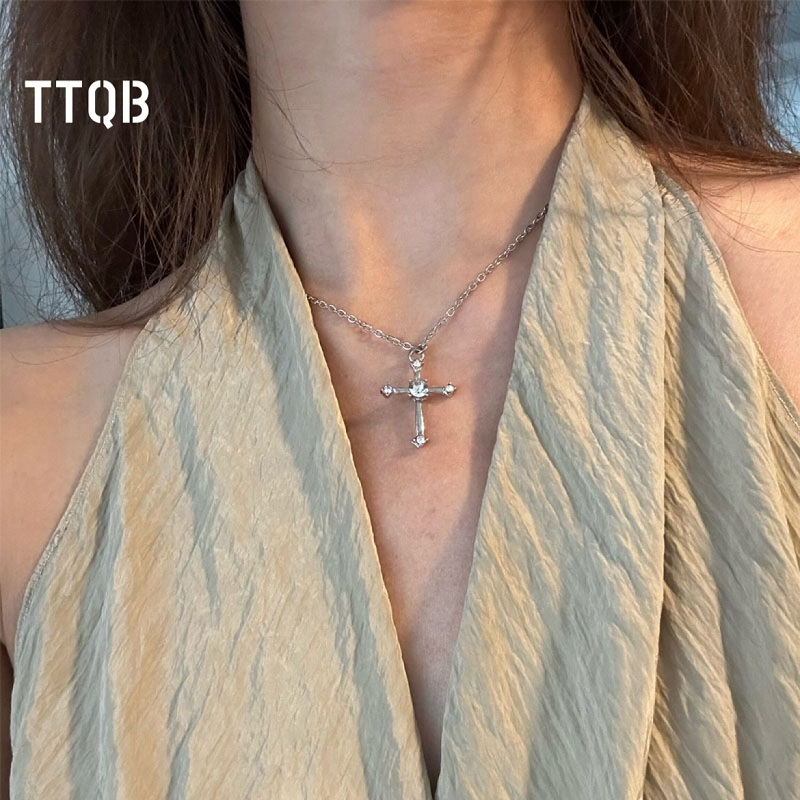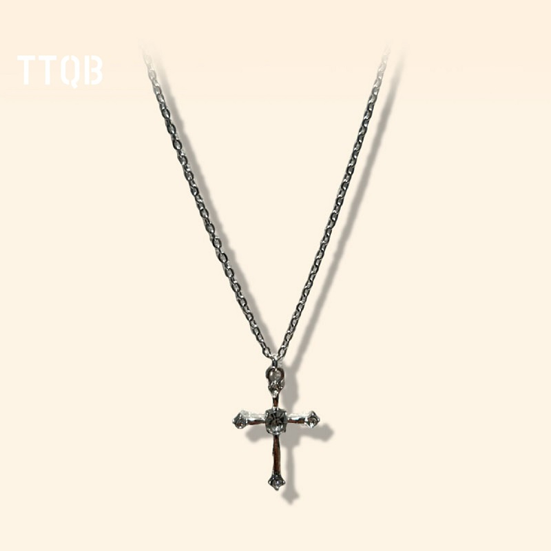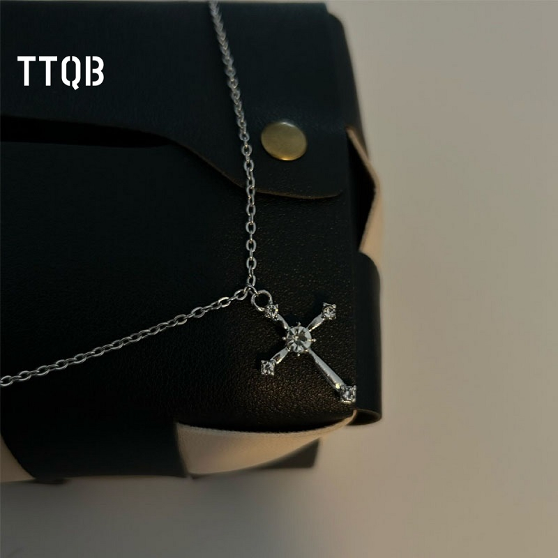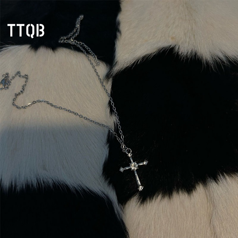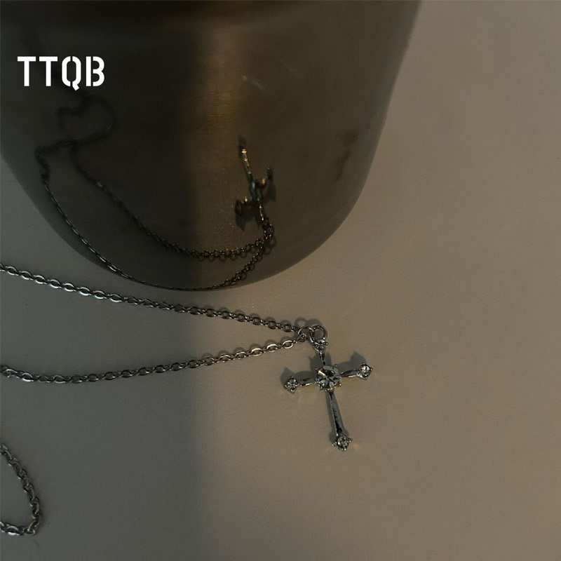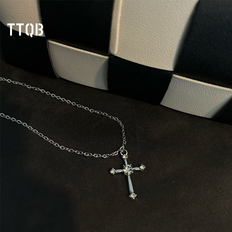 Detail Fashion Berlian Liontin Salib Baja Titanium Kalung Perak