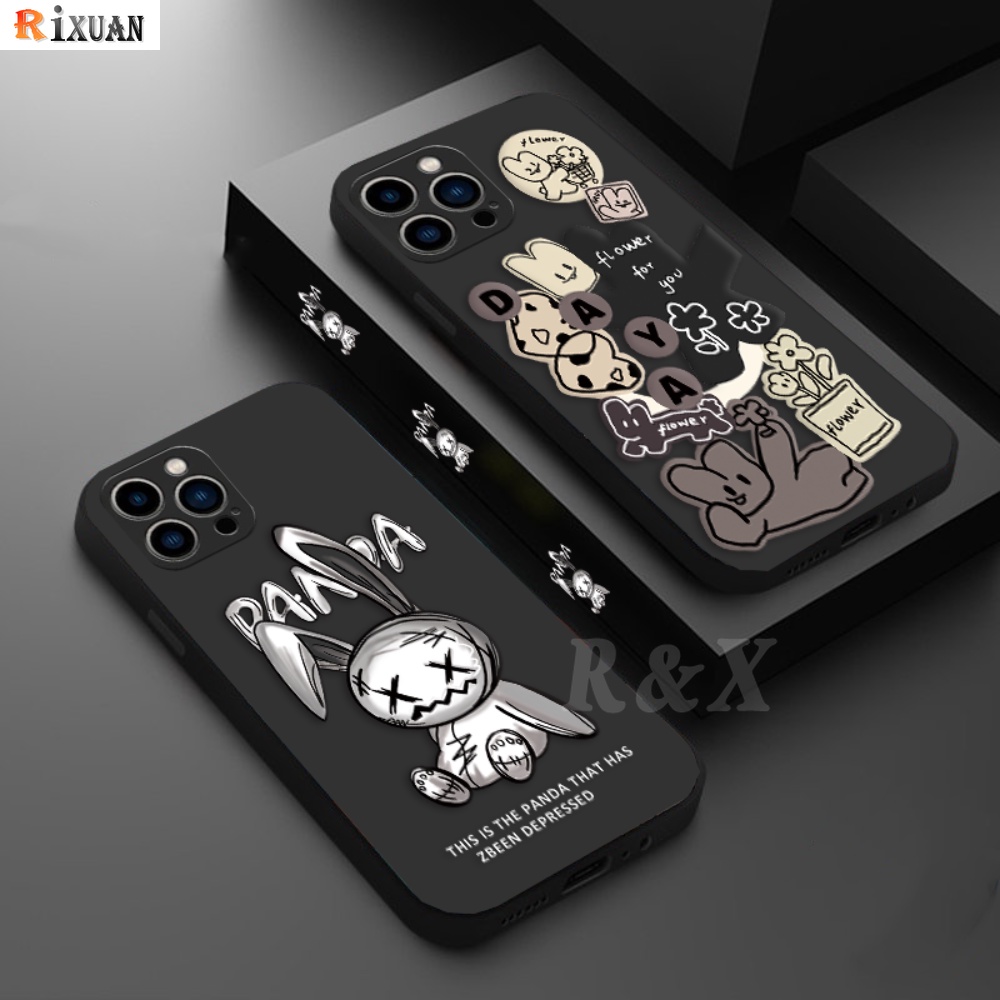 Detail Fashion Case Untuk iPhone 11 Pro Max Iphone14 12 13 iPhone6 6S 7 8 Plus Xs Max XR SE 2020 Lurus Tepi Sisi Pola Abstrak Kelinci Wayang Kelinci Kelinci Lembut Tpu Cover RIXUAN