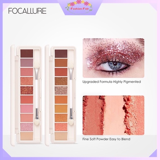 Detail Fashion Fair - FOCALLURE 10 Warna Glitter Eyeshadow palette - kosmetik Mata FA158