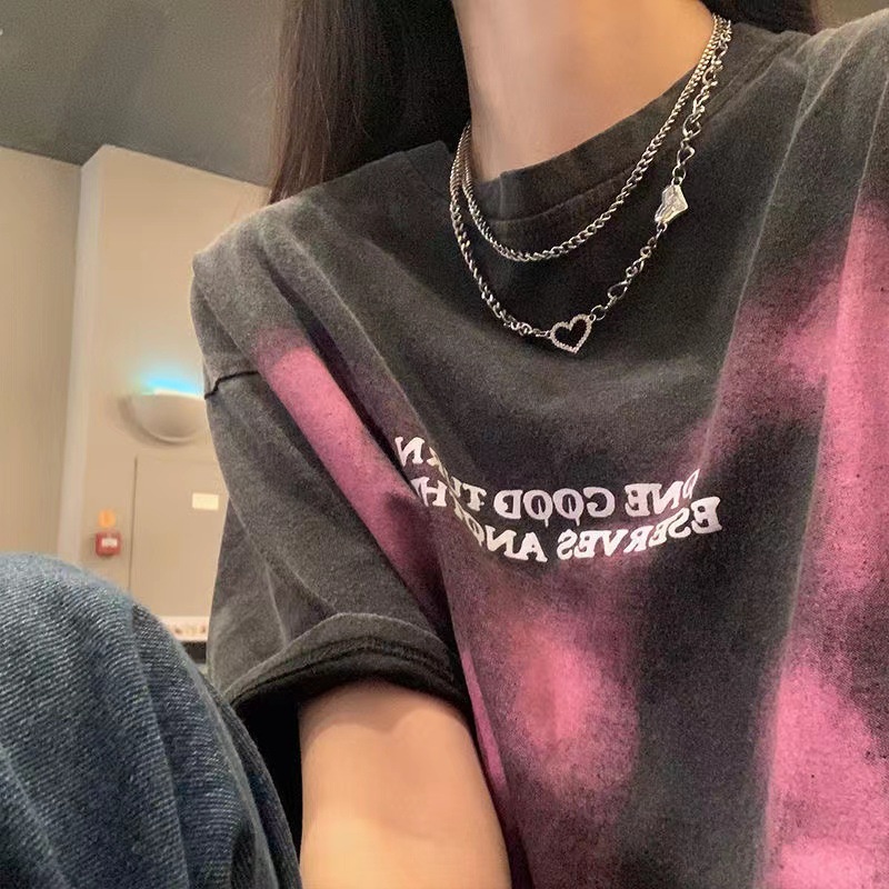 Detail Fashion Jahitan Hati Kalung Lapisan Ganda Perak Anti Karat