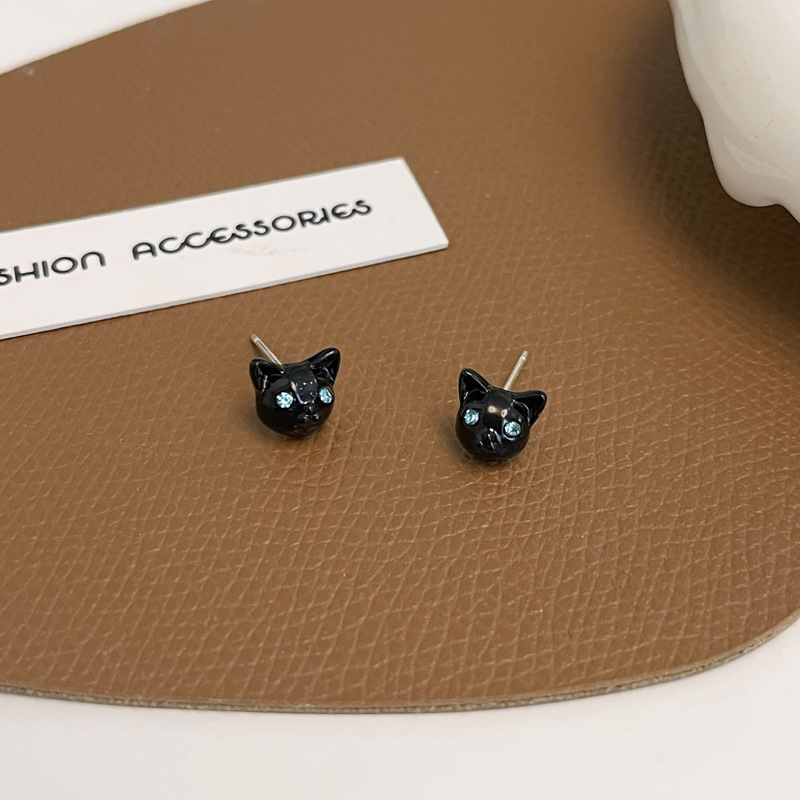 Detail Fashion Korea Kucing Hitam Styling Manis Pedas Anting Sederhana Anting Wanita Stud Earrings