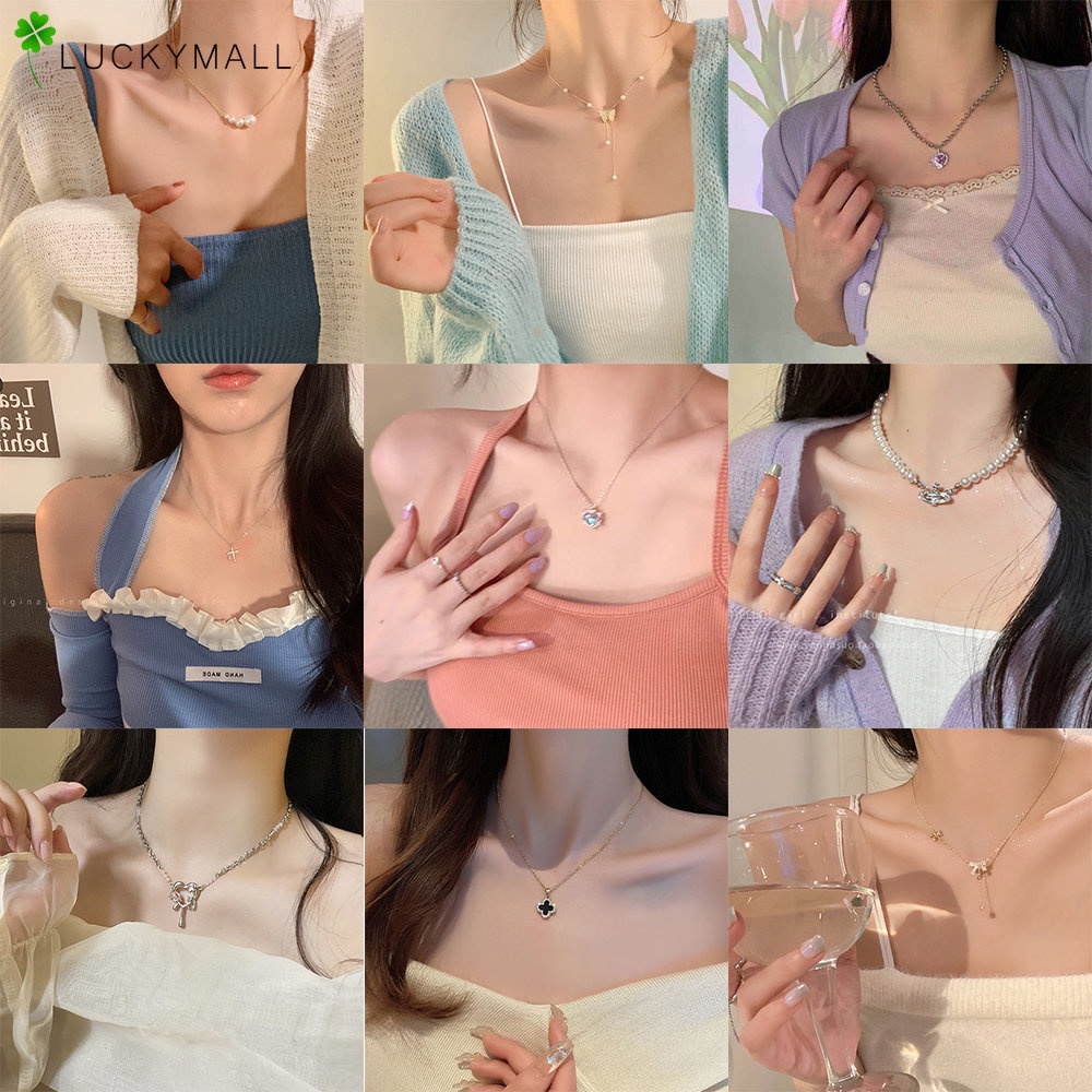 Aksesoris Fashion > Kalung > Rantai & Link > Fashion Mutiara Merah Muda Batu Permata Hati Kalung Untuk Wanita Zirkon Elegan Kupu-Kupu Bunga Planet Kalung Perhiasan Aksesoris