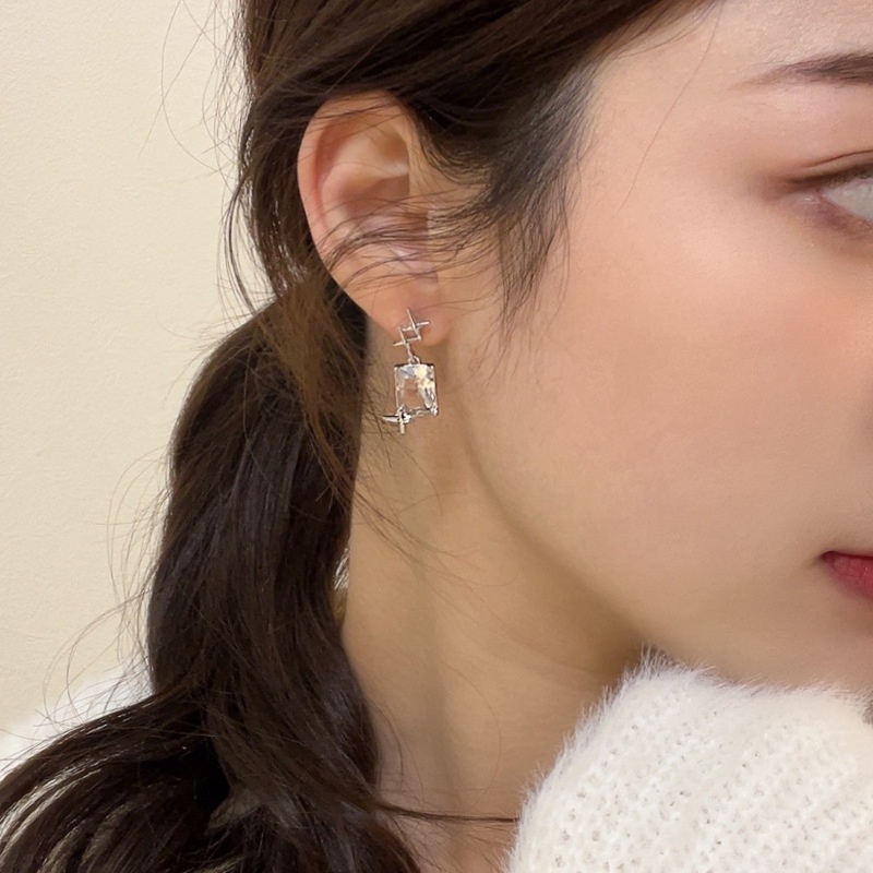 Detail Fashion Sederhana Unik Geometris Persegi Kristal Menjuntai Anting-Anting Wanita Gadis Canggih Indah Empat Berujung Bintang Drop Earrings Perhiasan