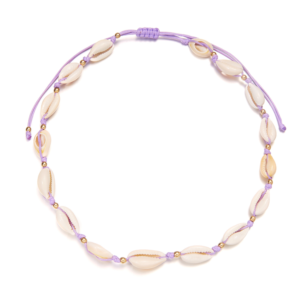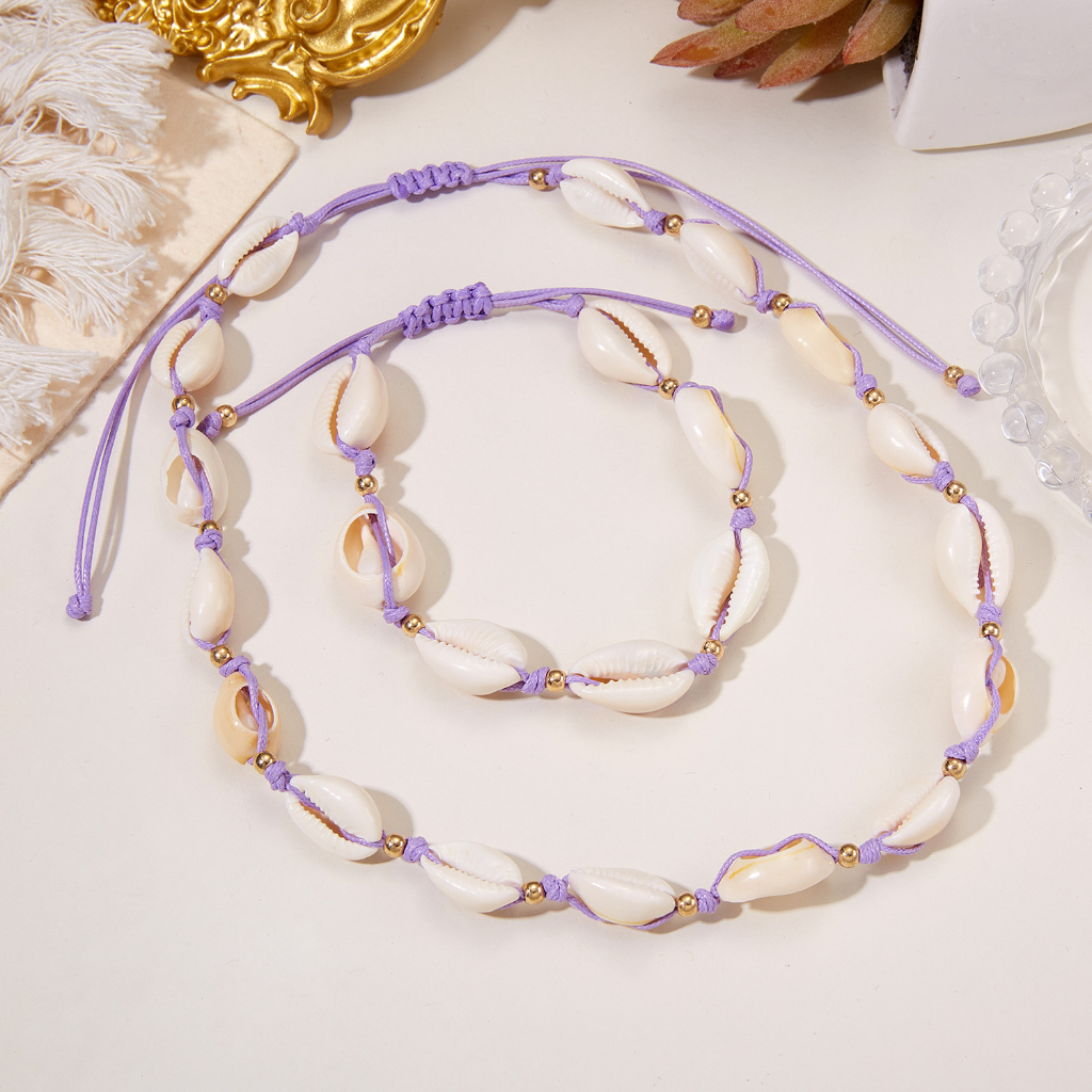 Aksesoris Fashion > Kalung > Kalung Lainnya > Fashion Shell Kalung Tali Lilin Tenun Tangan Adjustable Kalung Gelang Set Untuk Aksesoris Perhiasan Wanita