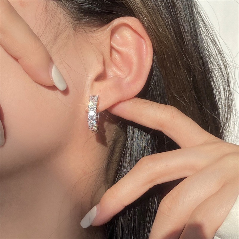 Detail Fashion Zirkon Anting Anting Berkualitas Tinggi Sederhana Berkelas Bertabur Berlian Cahaya Mewah Pacar Anting Earrings