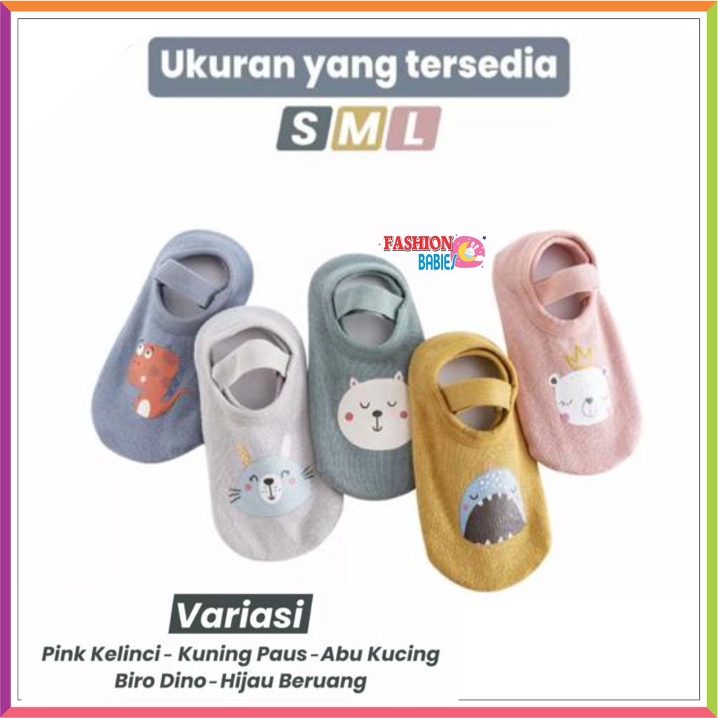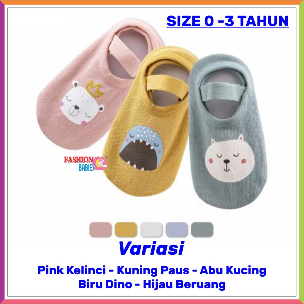 Kaos Kaki Ankle Dengan Strap Motif Kartun Hewan Bahan Katun Anti Slip untuk Bayi.