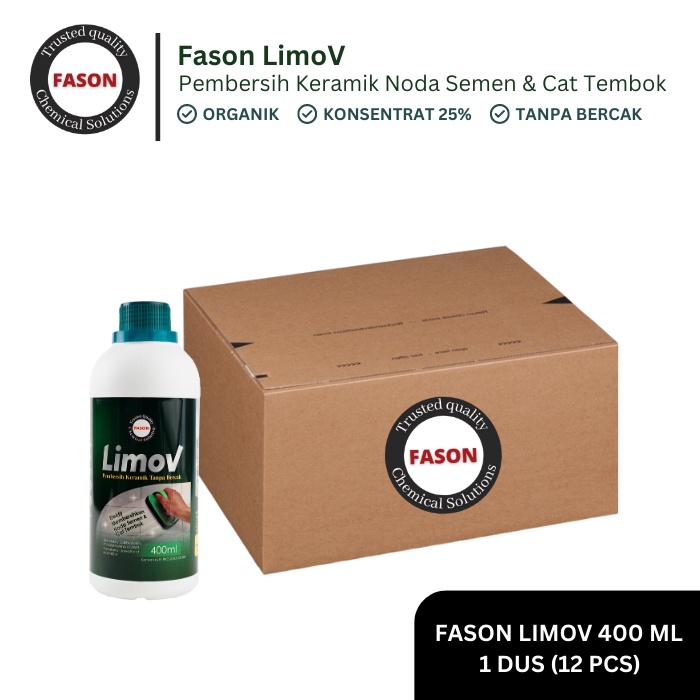 1. Tuangkan Fason Limov ke noda yang ingin dibersihkan . ( untuk pembersihan indoor , disarankan untuk menggunakan masker , karena baunya agak menyengat, terbuat dari bahan organik fermentasi ) 2. Diamkan sekitar 5 - 10 menit ( didiamkan semakin lama akan semakin bagus , berbeda dengan yang berbahan dasar HCL atau bahan kimia keras lainnya , karena jika berbahan dasar HCL atau sejenisnya semakin didiamkan maka akan semakin merusak / mengikis lapisan keramik ataupun granitile ) 3. Sikat menggunakan sikat pad / serabut 4. Bilas sampai bersih *Ulangi jika masih ada noda tertinggal