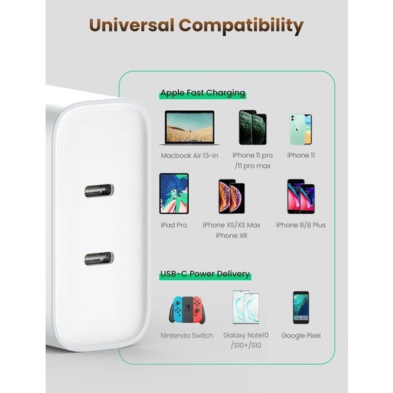Fast Charger UGreen Dual Port USB-C / USB-C 36W (70264)