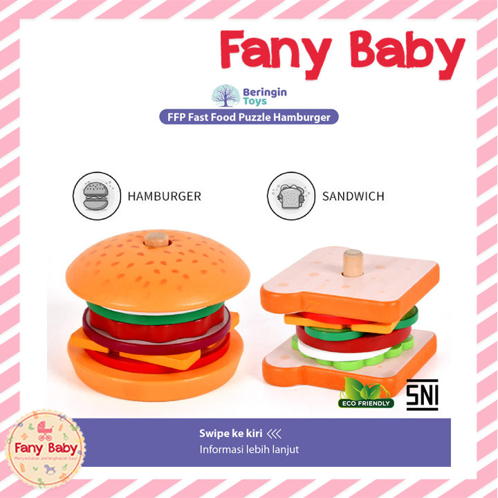 Fast Food Puzzle FFP merupakan mainan edukasi berbahan dasar kayu berkualitas dan memiliki permukaan yang halus sehingga aman dimainkan oleh anak-anak.
