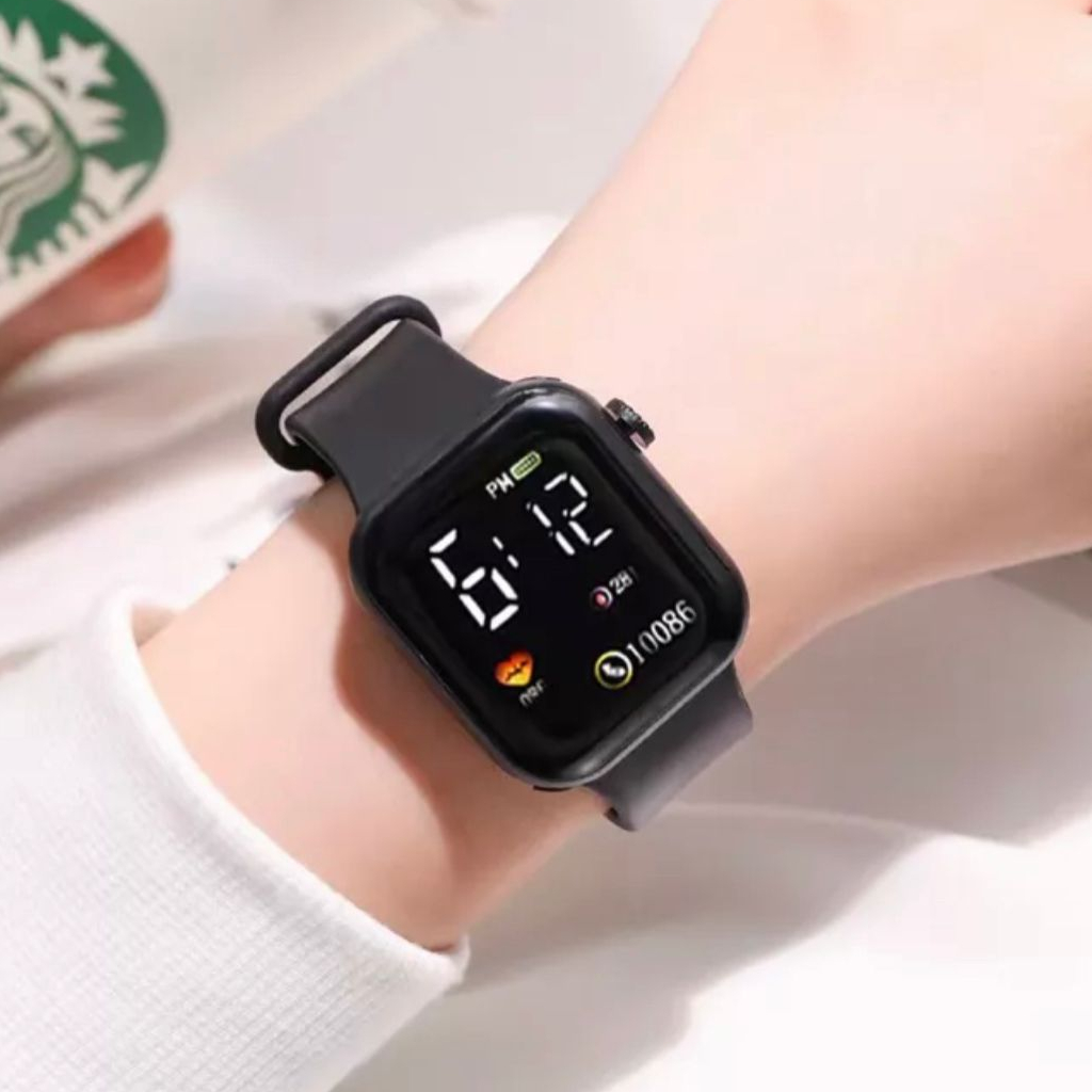 Fast iD -Jam Tangan Digital LED JT281 Tali Satu Warna Rubber Kotak Unisex Watch Electronic Fashion Korean Style Persegi Pria Wanita Couple Anak Remaja Import Jam Tangan Model Series 8