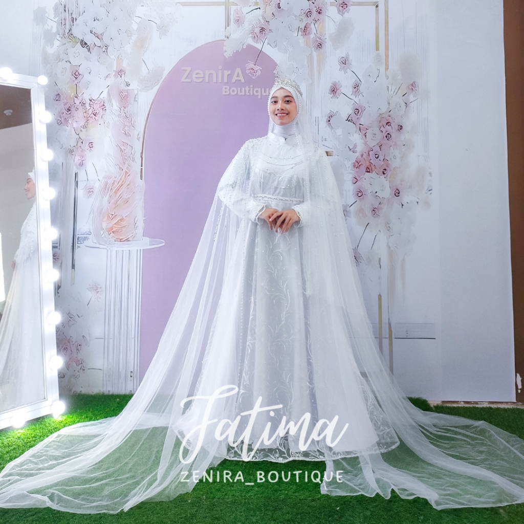FATEEMA Wedding Dress MEWAH PAKET LENGKAP FREE VEIL, PASMINA, CADAR dan tile Wings slayer Mewah berpayet / Gaun pernikahan putih / akad nikah / prewedding / maternity Realpict ORI by ZenirA