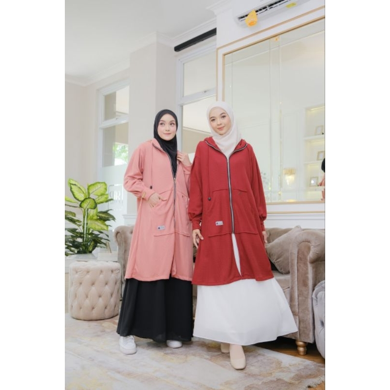 Berbahan material yg jatuh, empuk dan menyerap keringat, outer Fathiah cocok digunakan untuk beraktivitas di dalam maupun luar ruangan.