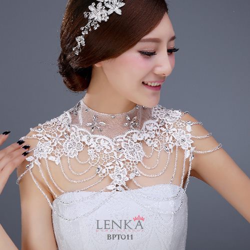 Ukuran: Free Size Fit to XL (lingkar leher : 45 cm, panjang depan : 25 cm) Warna: Putih Silver Cara pakai : kaitkan kedua ujung bolero dengan klip yang telah tersedia Dengan desain renda pada bagian atas dada dan juga mutiara yang makin mempercantik penampilan anda.