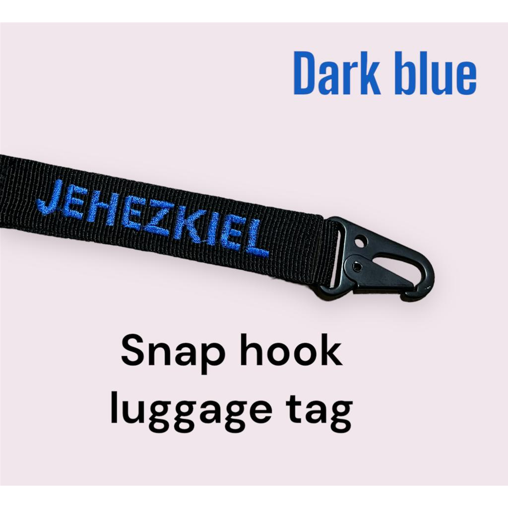 Snap Hook Keychain sangat cocok untuk hadiah . souvenir ulang tahun ke teman / keluarga. Bahan : polyester hitam pengait : black metal snap hook dimensi : 12-15cm x 2.5cm Max 12 Letters include spacing . silahkan tulis nama yang akan dibordir di kolom catatan / remark sebelum check out (No Direct message) dengan format : Tag color : NAME, Tag Color : NAME . happy custom!!!