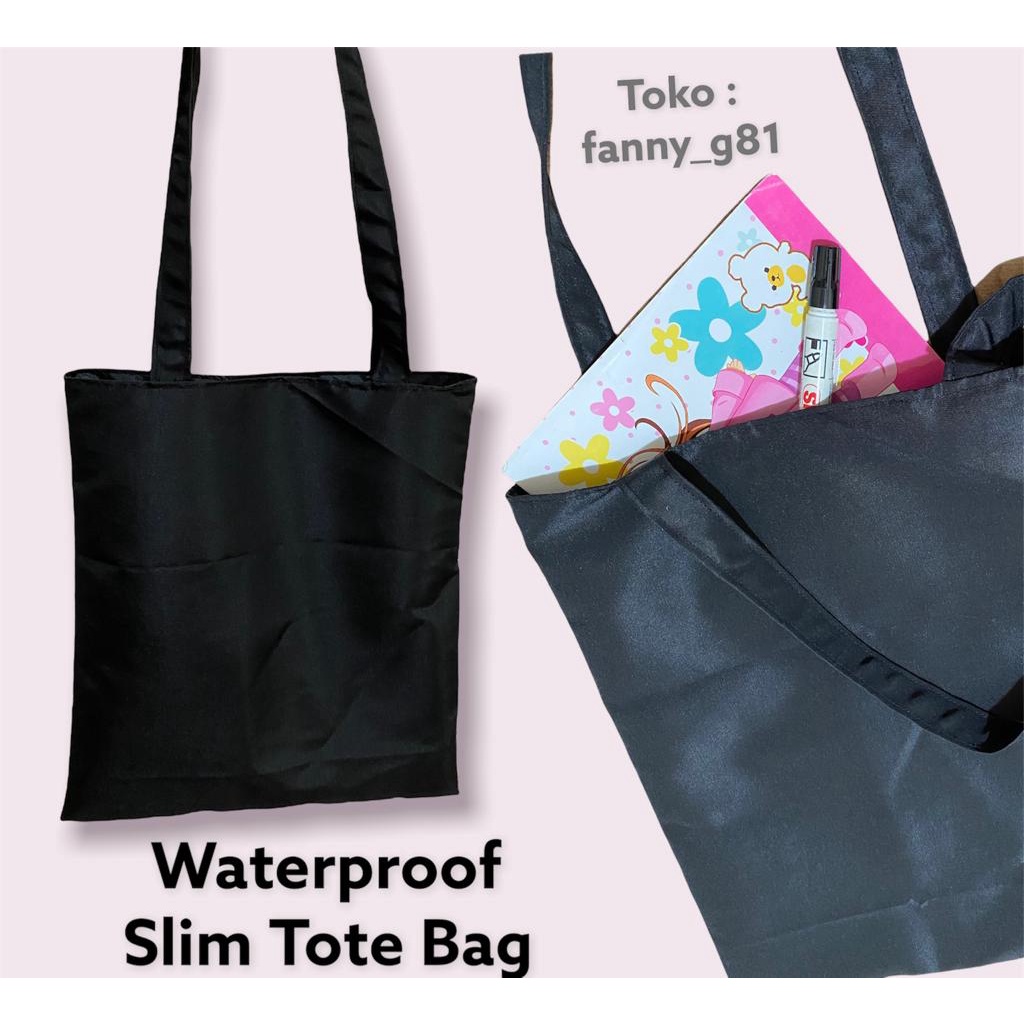 Tote Bag Bahan Waterproof!!! . Terbuat dari 2 lapis bahan waterproof premium quality. Ukuran tas :36x33cm muat dokumen ukuran folio, laptop , notebook , berkas kerja, buku kuliah dll. Penutup : Velcro sehingga bisa mengunci agar barang barang tidak terjatuh. bisa di sangkel di bahu. Bisa custom Nama Warna Dasar : Hitam , Silver, Navy. . Yuck silahkan diorder, sangat cocok untuk kebutuhan membawa barang barang keseharianmu.. . Fawn;G Handmade