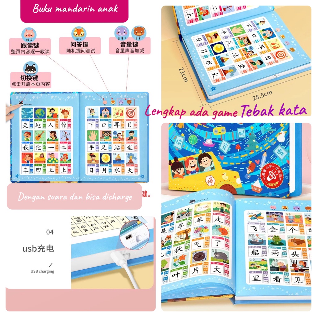 Keunggulan buku belajar mandarin ini : - Dilengkapi dengan audio cara membaca yang tepat - Mudah digunakan oleh si kecil karna setiap kata ada tombol audio - Setiap lembar buku sangat tebal dan tidak gampang sobek - Gambar sangat menarik karna sesuai dengan barang sehari hari yang ditemui oleh si kecil - Dirancang dengan warna yang tajam dan full colour. - Dilengkapi dengan tombol on off dan terdapat usb until me-charge buku tersebut - Dilengkapi fitur permainan untuk menebak kata jadi anak bisa belajar sambil bermain