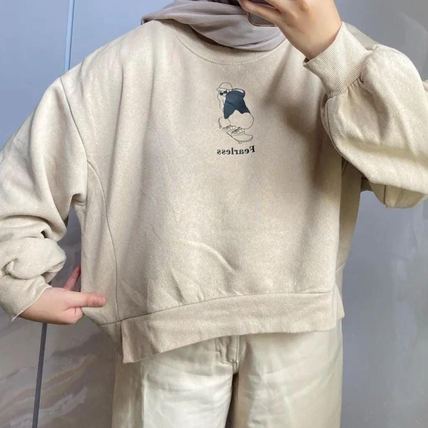 Detail FEARLESS SWEATER CREWNECK SIMPLE ATASAN WANITA (V1)