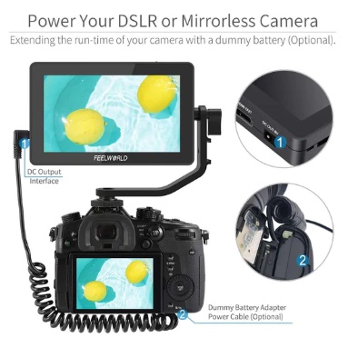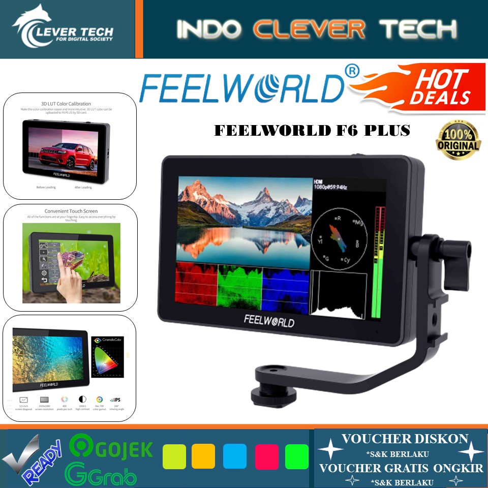 FeelWorld F6 Plus 5.5" 4K HDMI Monitor dilengkapi layar sentuh dengan resolusi 1920 x 1080 dan kecerahan 500 cd/m². Ini mendukung sinyal input HDMI hingga DCI 4K24 dan UHD 4K30, dan menyediakan output HDMI untuk terhubung ke pemancar nirkabel, monitor on-set yang lebih besar, dan perangkat lainnya. LUTs dalam format .cube didukung melalui slot kartu SD untuk melihat profil S-Log2, S-Log3, V-Log, dan Log-C di ruang warna Rec. 709.