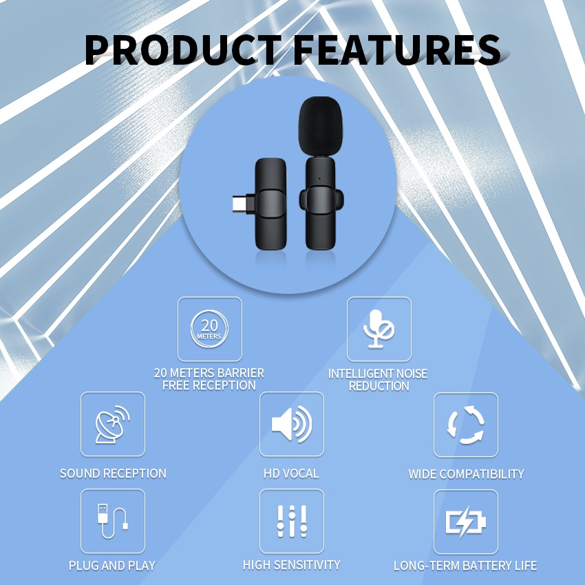 💕Deskripsi kinerja produk💕 1. [Pasang dan mainkan]- Mikrofon Lavalier yang inovatif berbeda dari yang lain, yang mencakup pemancar dan penerima, mereka akan terhubung secara otomatis, sehingga APP dan Bluetooth tidak diperlukan. Cukup colokkan pemancar ke perangkat (port USB C) dan mainkan secara langsung. 2. [Pengurangan kebisingan cerdas]-Mikrofon nirkabel menawarkan kualitas audio full band profesional 44.1~48kHz stereo CD, lebih dari 6 kali frekuensi mikrofon mono konvensional. Teknologi Real-Time Auto-Sync, kurangi video pasca-editing. Mendukung Multi-Channel Real-Time Mixing, dapat menyinkronkan musik latar untuk telepon dan suara manusia secara real time. 3. [Mendukung ponsel, kamera, laptop, dan perangkat lainnya]-- mikrofon dapat digunakan langsung ketika Anda memutar Youtube atau Facebook Live streaming, Bluetooth konvensional gagal untuk menyadari. 4. Gunakan skenario: wawancara pertunjukan langsung, video pendek Vlog.