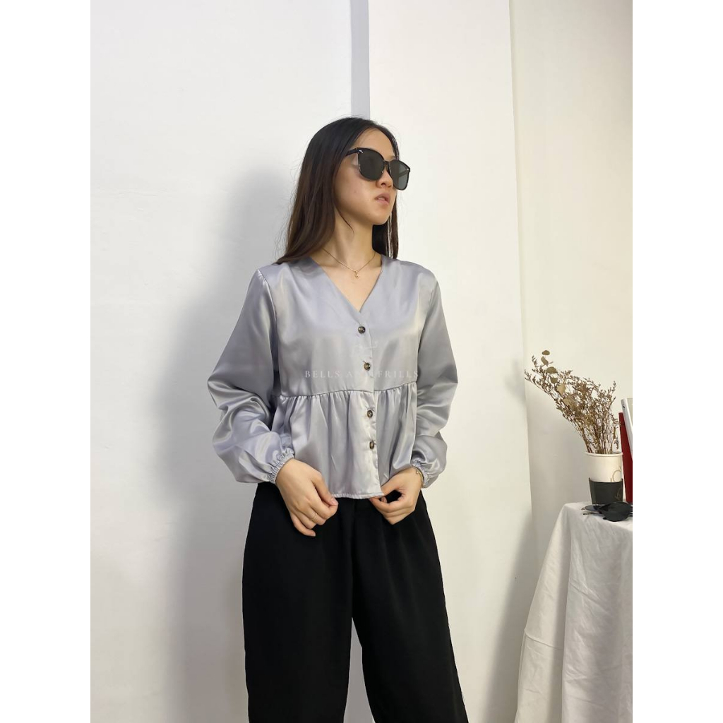 Detail FELICIA V Neck Blouse - Atasan Satin Longsleeve / Atasan Casual Korean Look 0432