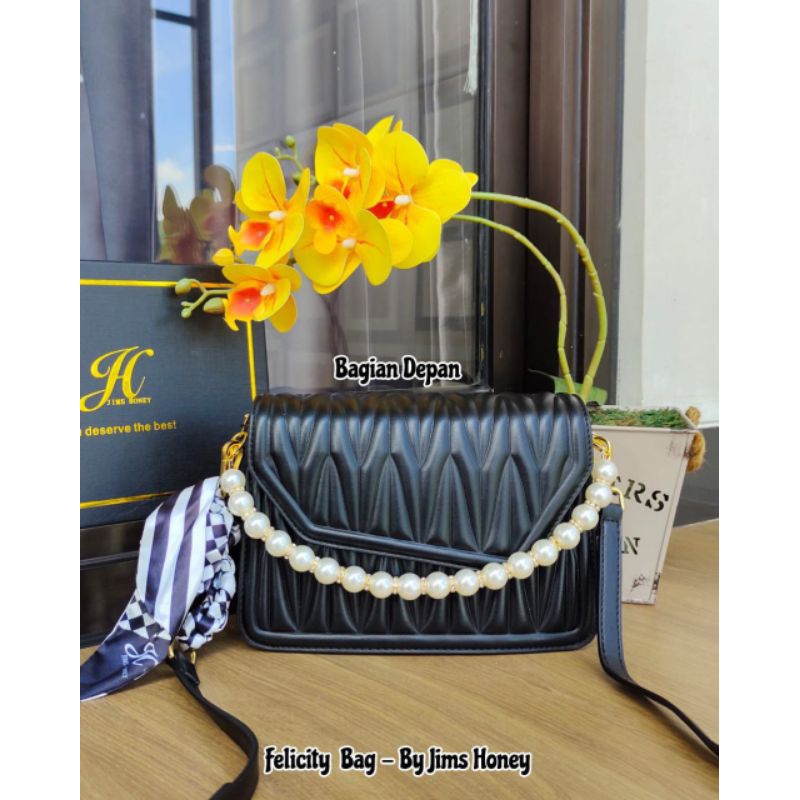Detail FELICITY BAG ❤️ GRATIS BOX❤️ JIMSHONEY tas mewah simpel gratis scarf tali mutiara