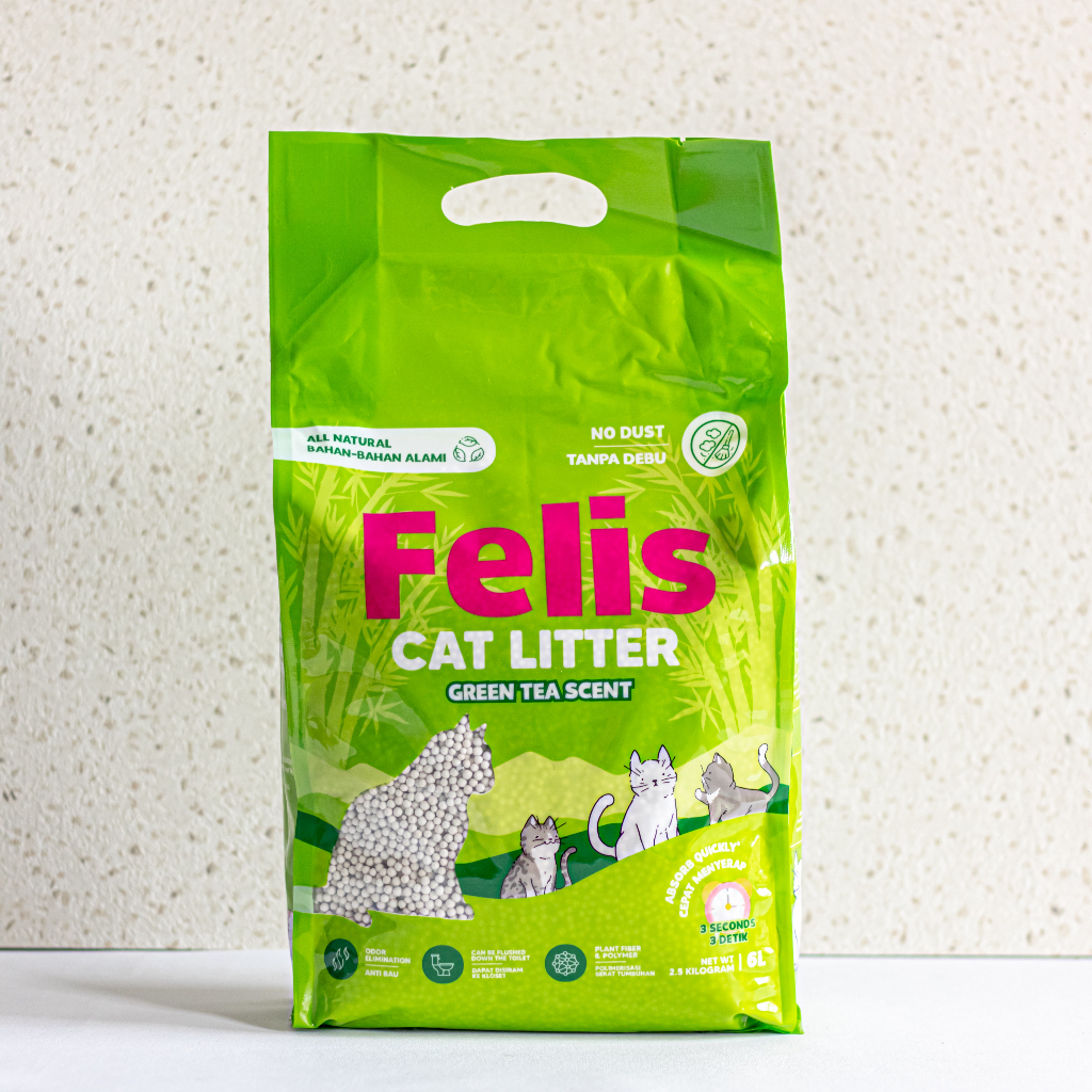 Felis cotton cat litter yang terbentuk seperti cotton balls terbuat dari bahan organic. Produk Felis ini adalah cat litter baru dan pertama di Indonesia yang tanpa debu. Terbuat dari bahan alami dan ramah lingkungan.