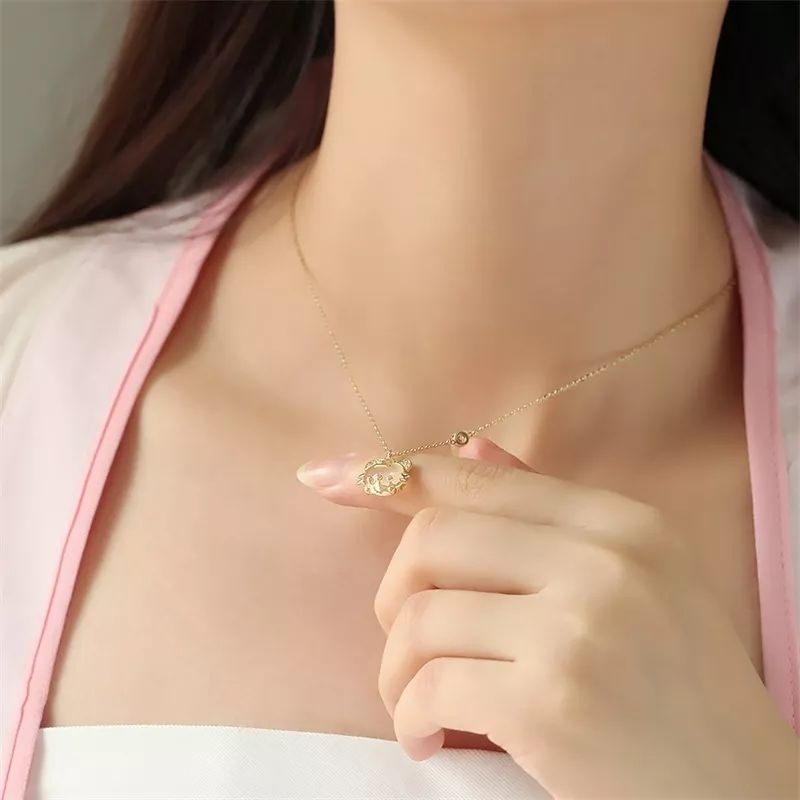 Detail FerenHongXia Kalung Rantai Liontin Batu Giok Alami Motif Shio Macan Untuk Wanita Perhiasan