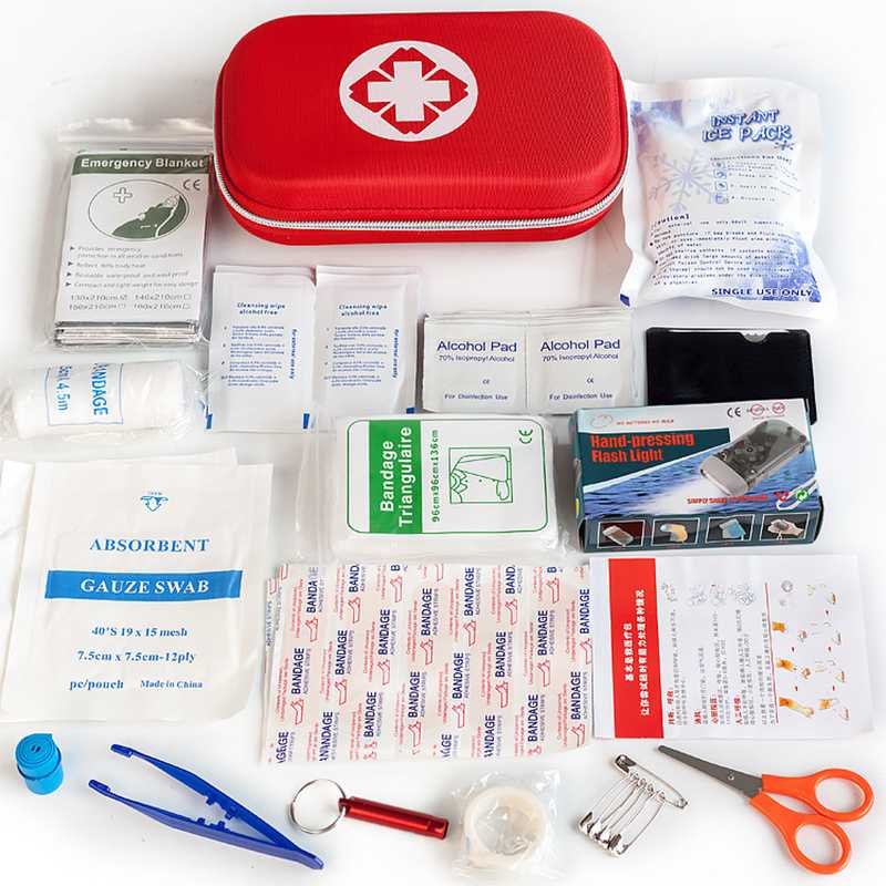 Fitur 18 in 1 Fungsi Perlengkapan yang tepat untuk menolong Anda pada saat terluka, tas yang berisikan alat-alat pertolongan pertama. Wajib dibawa saat sedang traveling, berpetualang ataupun sekedar berjaga-jaga di rumah dan kantor. Beberapa alat yang tersedia seperti plaster, perban, gunting, peniti, emergency blanket, pad alkohol dan masih banyak lagi.