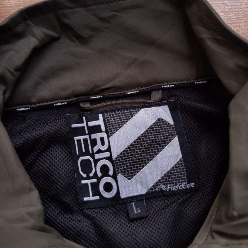 material softshell nyaman buat kegiatan outdoor Zipper lengkap dan masih bawaan warna hijau pekat sablon mulus