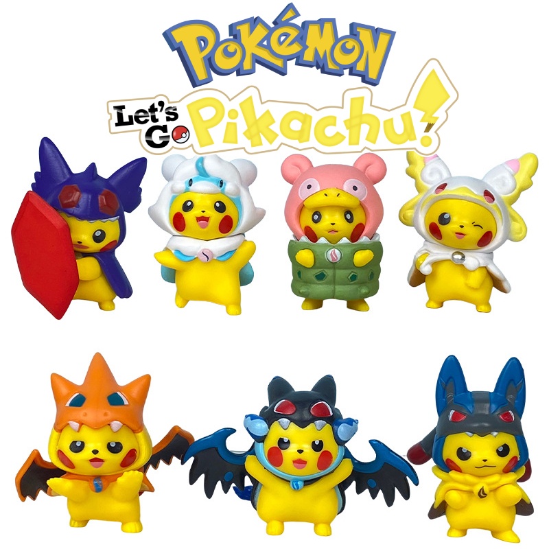7 Pcs Pokemon Pikachu Cross-Dressing Gambar Boneka Mainan Ornamen Mobil Hiasan Hadiah