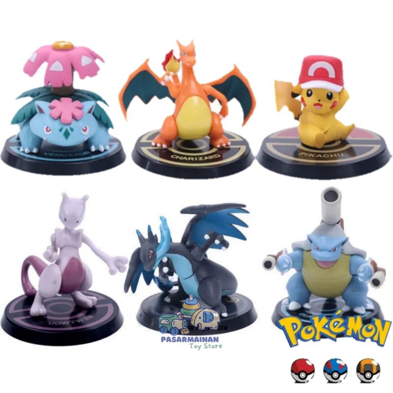 Figure Pokemon Pikachu Charizard Blastoise Mewton Set 6 Mainan Miniatur Hiasaan